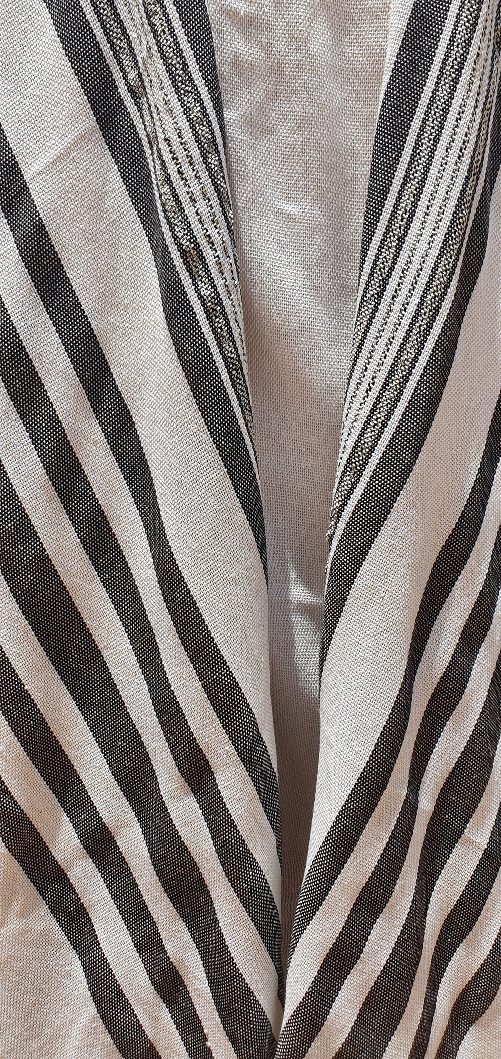 The design of this prayer shawl is a traditional classic design in black & white stripes. The tallit is handwoven from fine cotton on traditional looms by Jewish men in Israel.