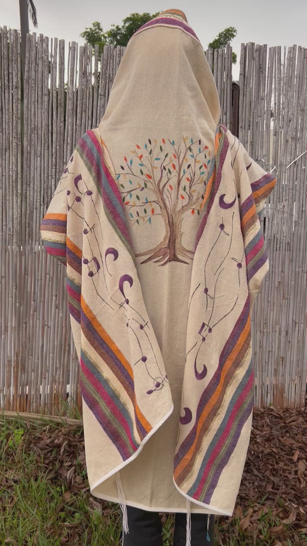 Handmade Tallit Set - Tree of Life Art with Nusical Notes